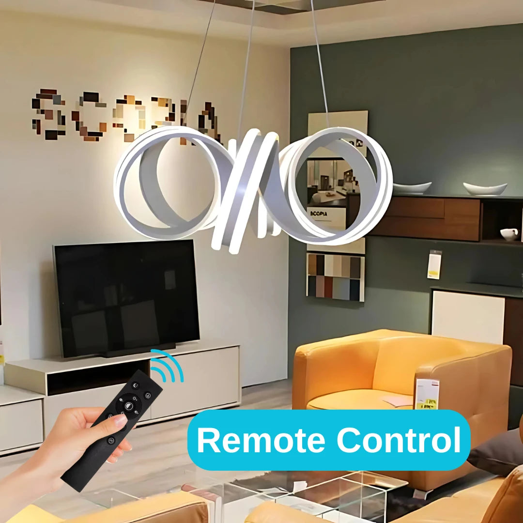 Suspended LED chandelier with remote control INFINITY TWIST 180W, Wavy, Cold/Warm/Neutral light, Dimmable, White, Height Adjustable