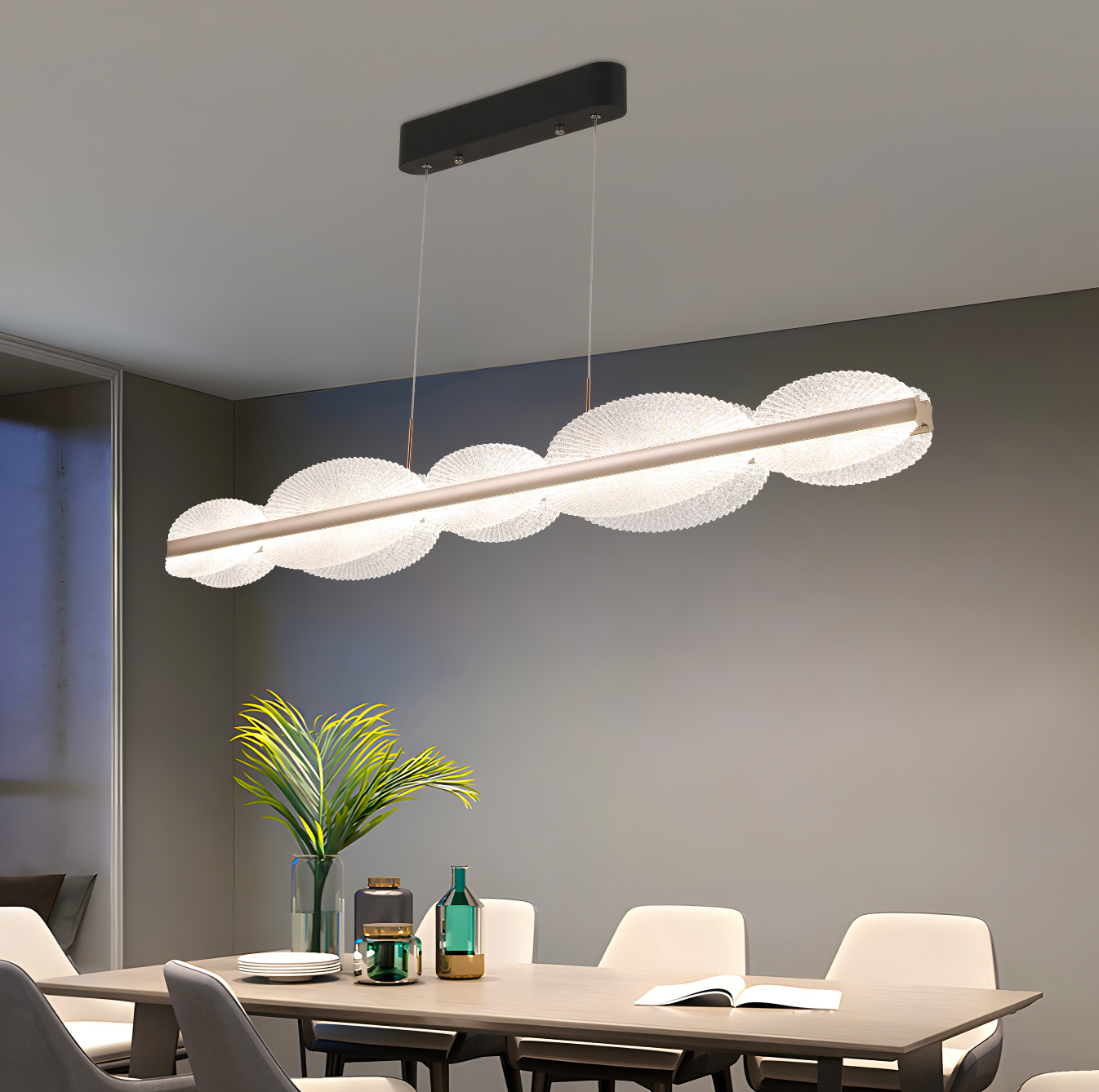 The height-adjustable suspension system allows the chandelier to be adjusted according to the ceiling and room proportions. The light is evenly distributed with low energy consumption, and the metal and crystal structure guarantees durability and a premium look, suitable for living rooms, dining areas or performance spaces.
