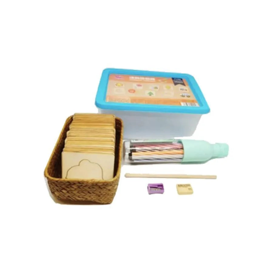 Educational Game Draw Around the Cardboard, Set of 10 Markers, 60 Cardboards, Wood and Plastic